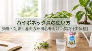 ハイポネックスなど、実際に使ってみた感想や使い方を紹介しています。
