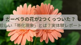 記事一覧ガーベラの花が2つくっついた?|珍しい「帯化現象」とは?実体験レポート 4年育てたガーベラが「2つの花を同時に咲かせる」という珍しい帯化現象を起こしました。病気との違いや発生の理由、育てて気づいた管理のコツを実体験から紹介します。記事一覧