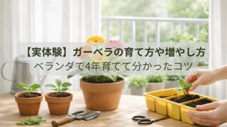 ガーデニング体験記【実体験】ガーベラの育て方や増やし方|ベランダで4年育てて分かったコツ はじめにガーベラは「日当たり・水やりのメリハリ」が育てるコツです。我が家では、子どものピアノ発表会でもらったガーベラをきっかけに育て始め、現在で約4年になります。最初は何度も枯らしかけましたが、試行錯誤を重ねる中で、少しずつ育て方のコツが分...ガーデニング体験記